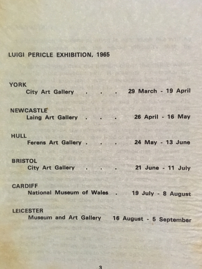 1965 was the year of the triumph for Luigi Pericle with a 6 museums tourné in England under the direction of Hans Hess :