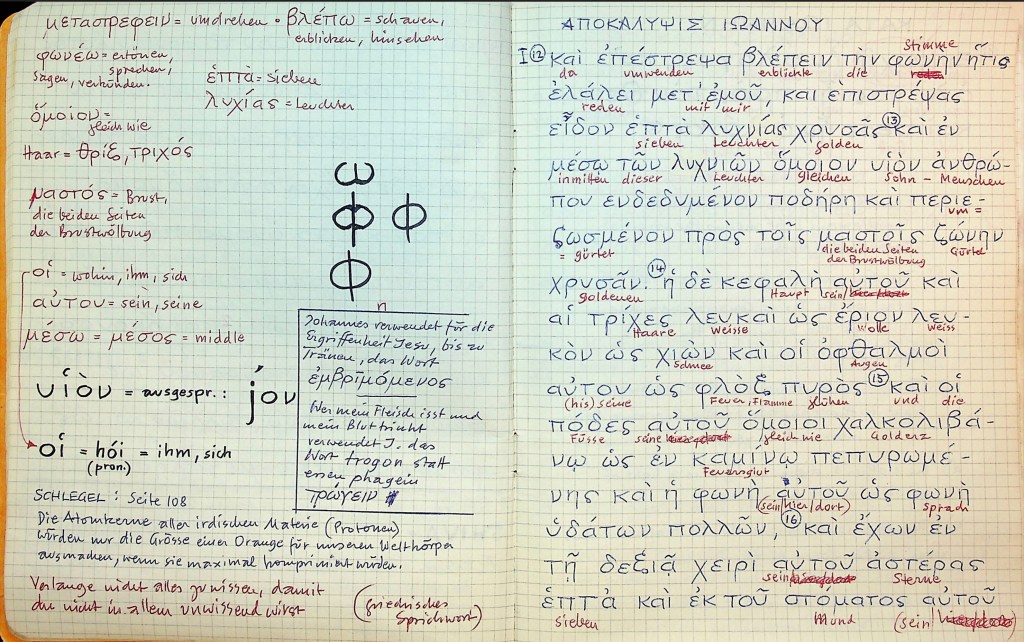 (Sotto, la nota tedesca “im Vollmacht ist der Logos” = “nella pienezza è il Logos” → indica la completezza del Potere Divino racchiuso nella Parola.)