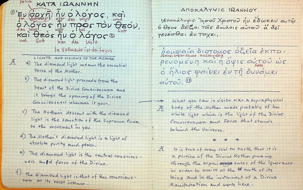 “What you saw in vision was a supraphysical body of the Mother made probably of Her white light which is the light of the Divine Consciousness and Force that stands behind the Universe.” Ciò che hai visto nella visione era un corpo sovrafisico della Madre, formato probabilmente dalla Sua luce bianca, che è la luce della Coscienza e della Forza Divine che sostengono l’universo.